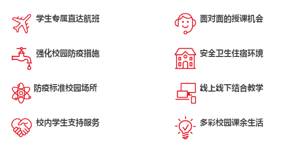 大学将根据政府的社交距离准则和卫生准则,设计和贯彻落实一系列措施,例如准备充足的防疫用品、加强校园和宿舍清洁消毒力度、线上线下结合的教学模式等,努力为同学们带来安全的多姿多彩的校园学习生活体验。